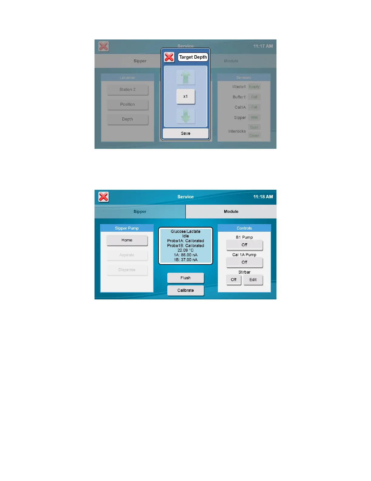 When you have finished testing the sipper pump, touch the [X] button to return to the main display.