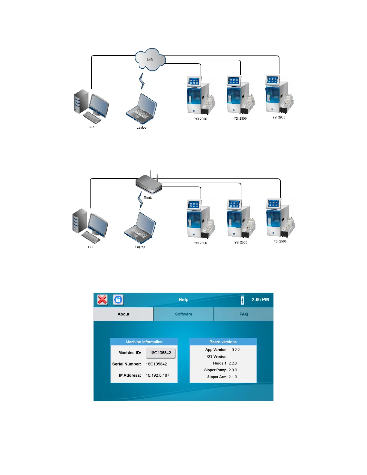Connect one or more 2500 Analyzer instruments to a router (DHCP server) via the RJ45 Ethernet port.