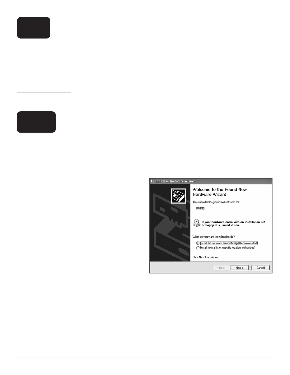 installed on the first connection. After the driver has finished, disconnect and reconnect the USB device