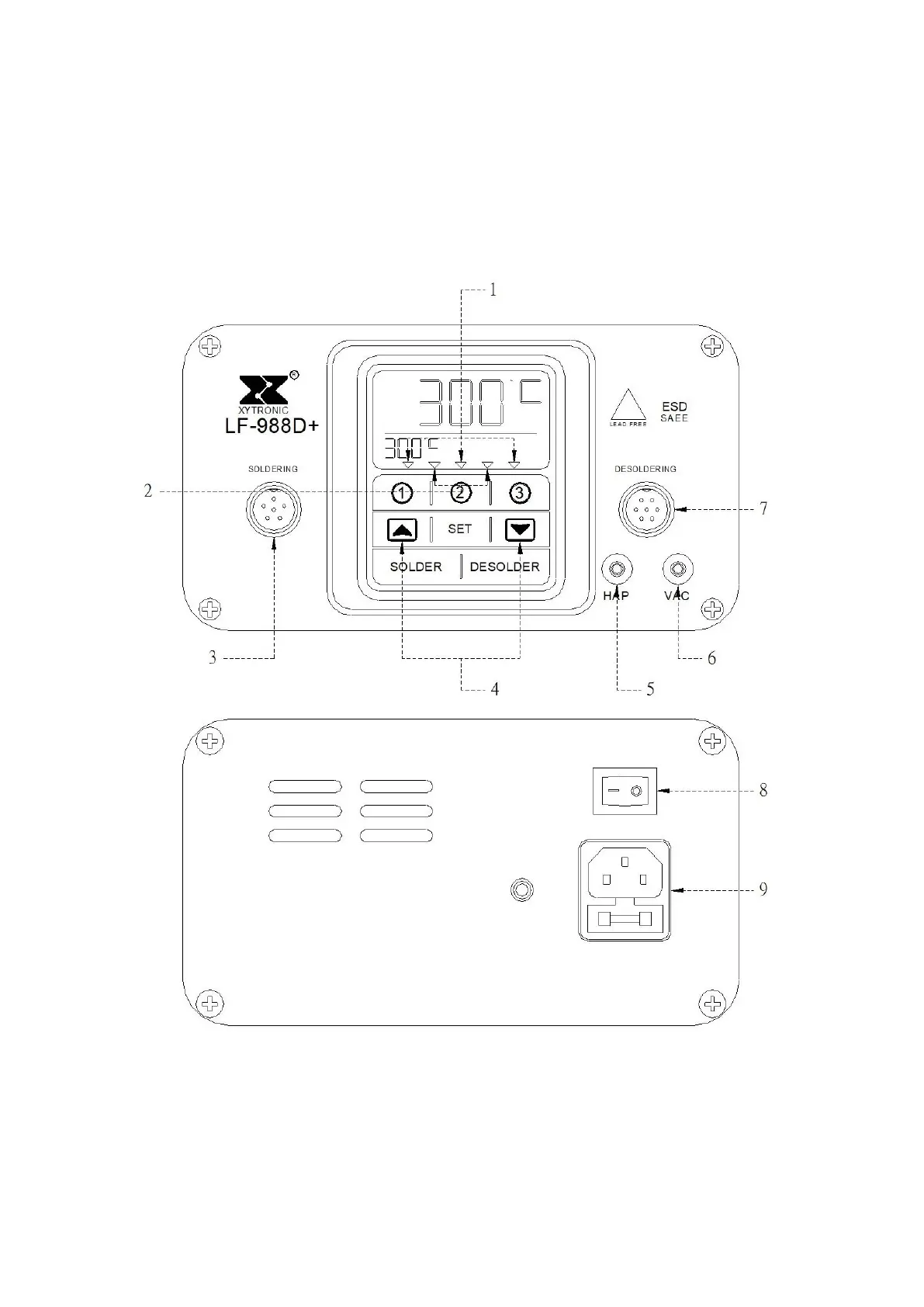 7.De-soldering Iron connector 8 Switch 9.Power Cord connector