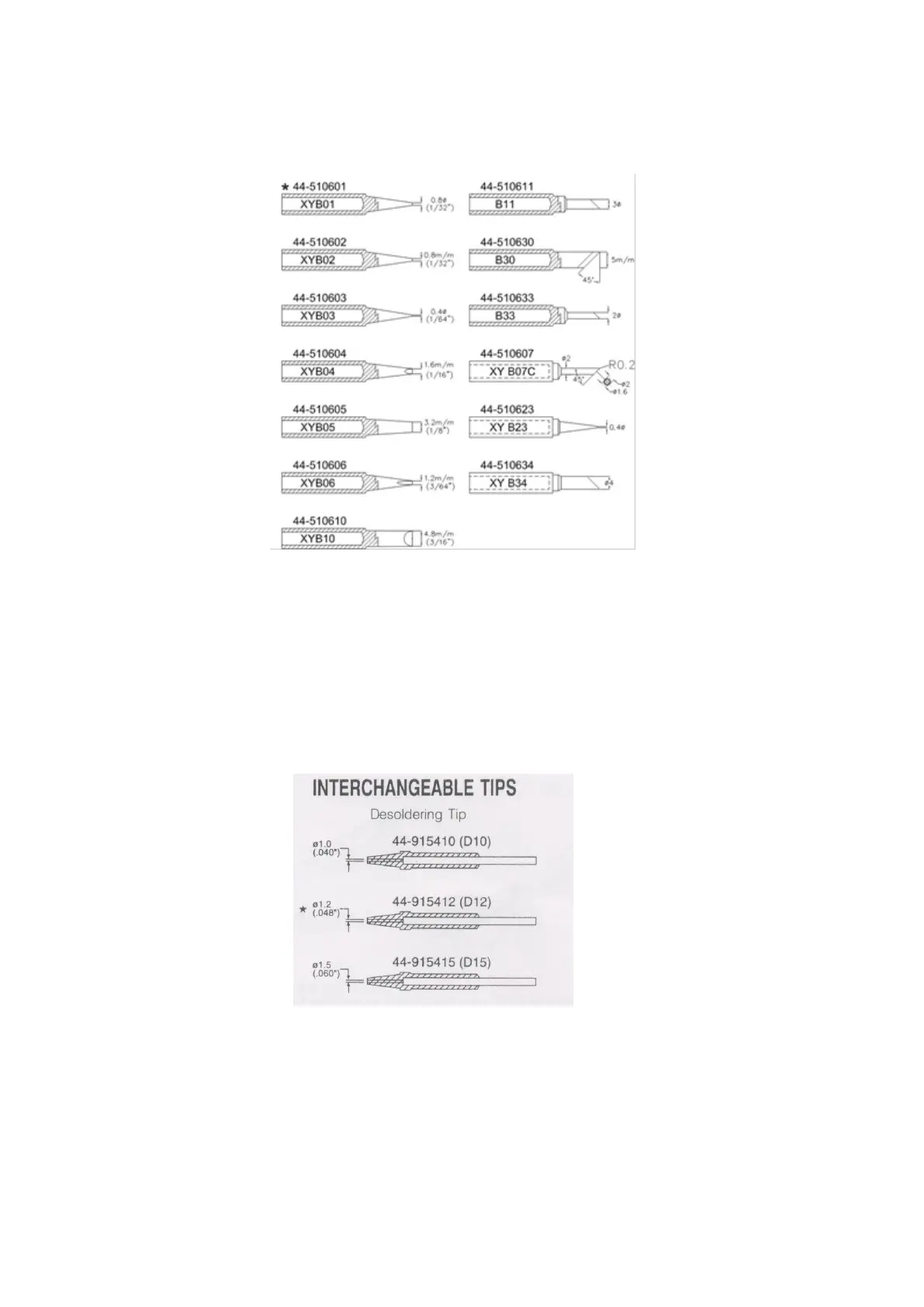 Xytronic LF-988D+ - Soldering Tip Chart; Soldering Tip Identification; Desoldering Tip Identification