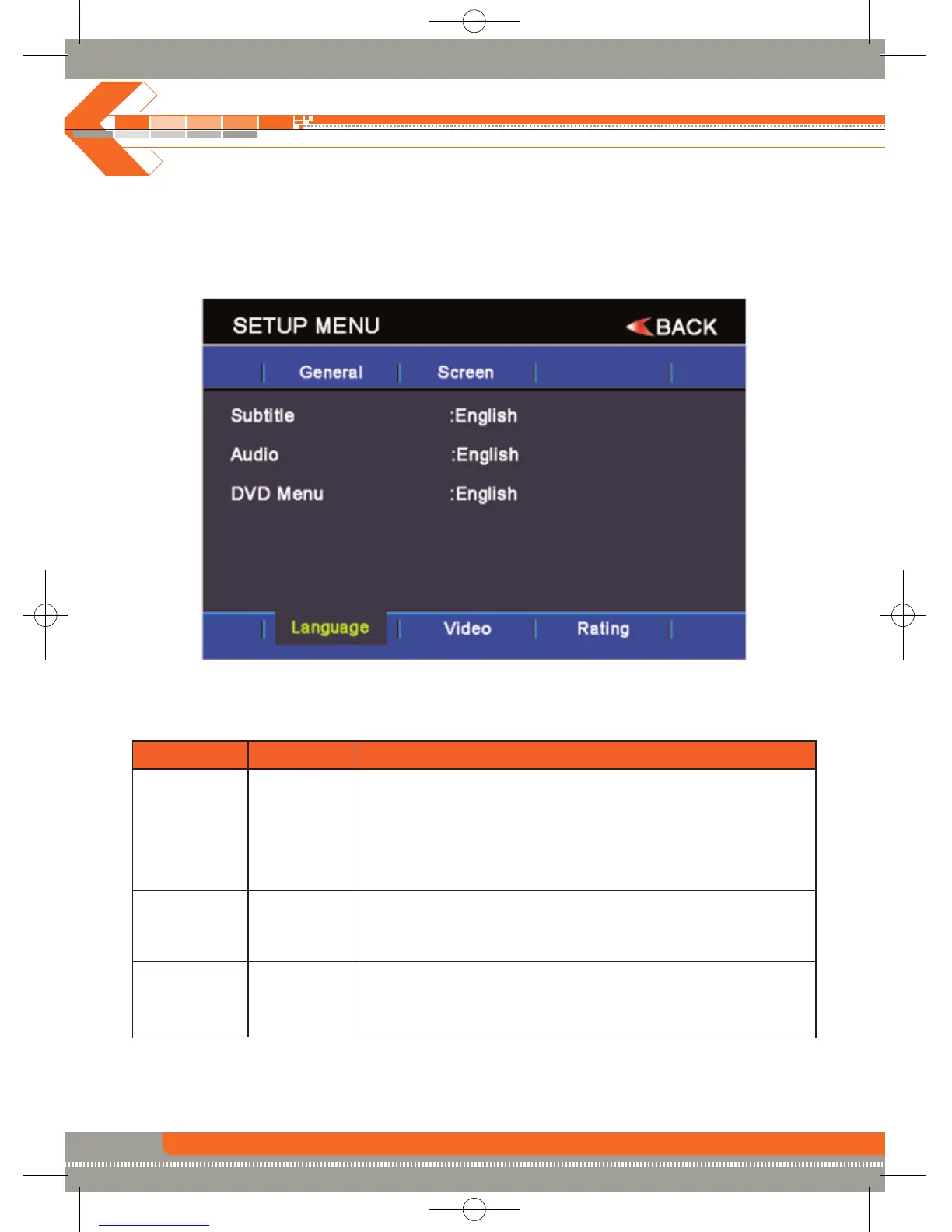 DVD Menü English Auswahl der Sprache, in welcher das DVD Menü dargestellt