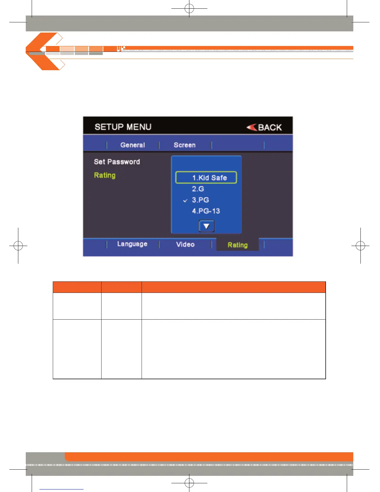 2. Wählen Sie zuerst das Setupmenü und anschließend das Menü für die Ratingeinstellungen aus.