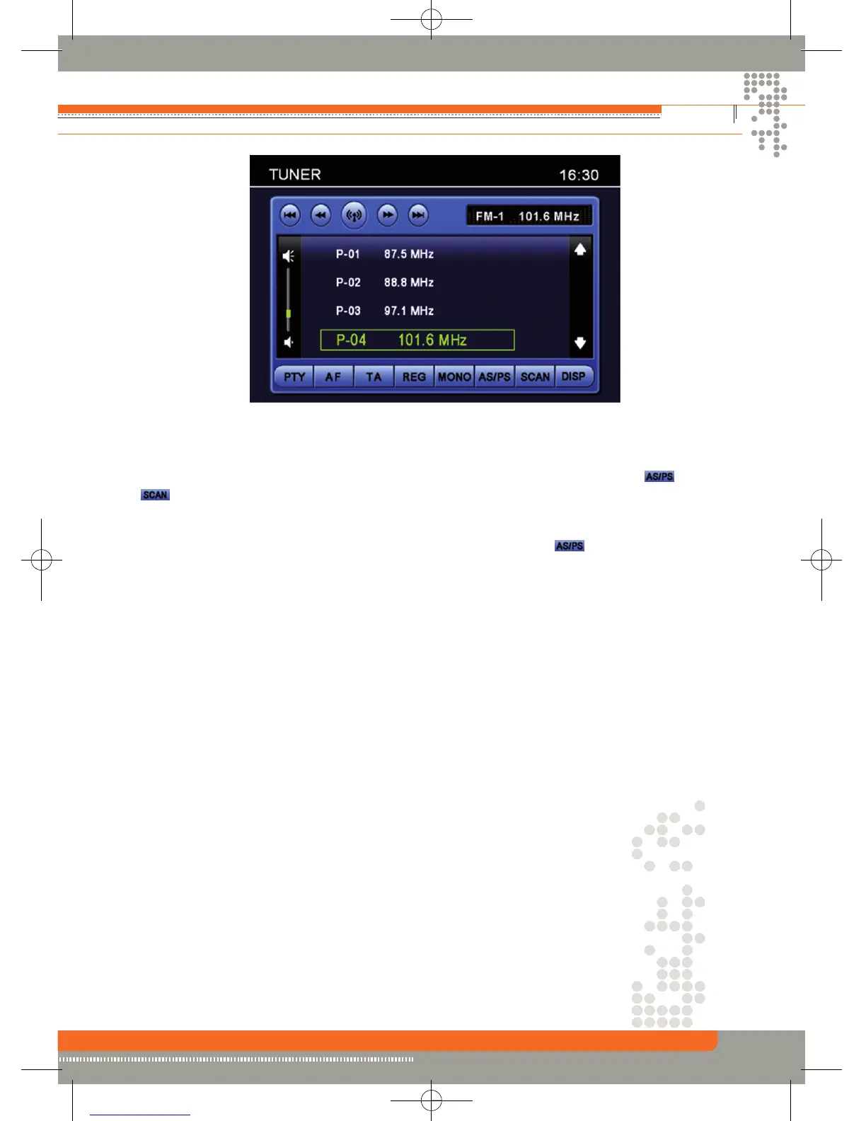 ( )-Icon auf dem TFT Bildschirm, um die gespeicherten Sender des ausgewählten Frequenz-