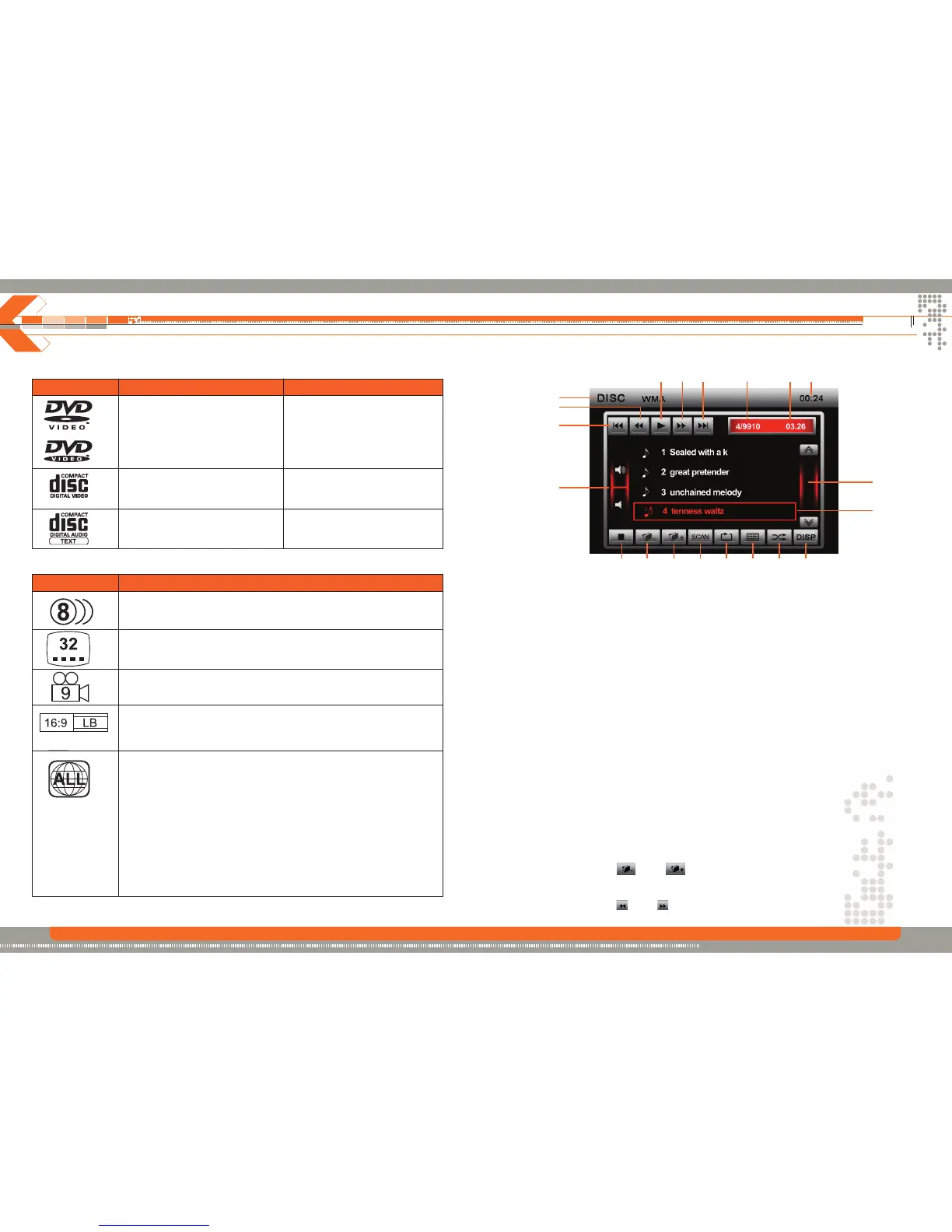 > Berühren Sie eines der ( ) oder ( )-Icons, um zwischen den sich auf der Disc befindlichen