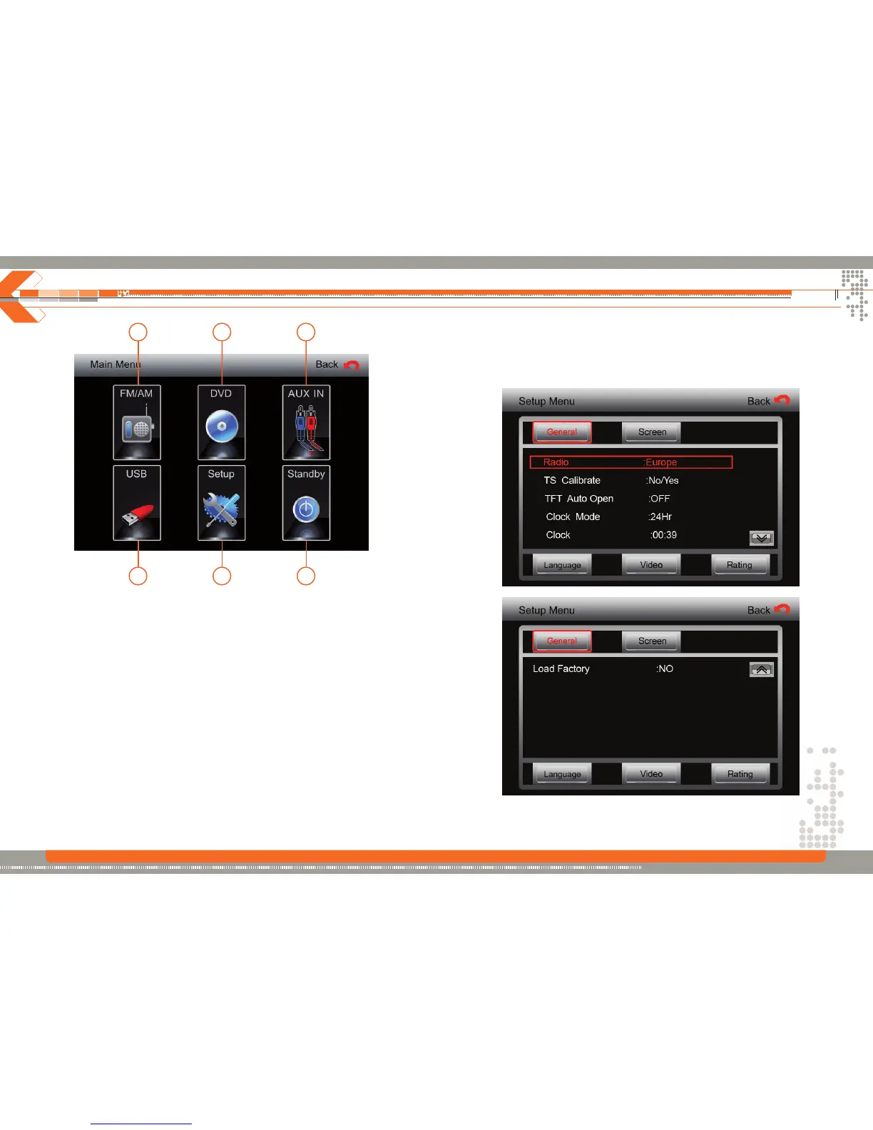 Note: Touch screen operations and buttons on front panel are all useable to select menu and