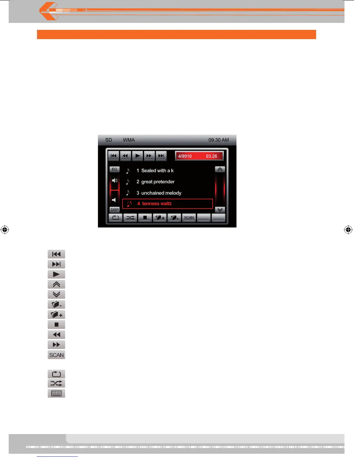 The touch keys on the screen for SD playback are described below. lcons definition see