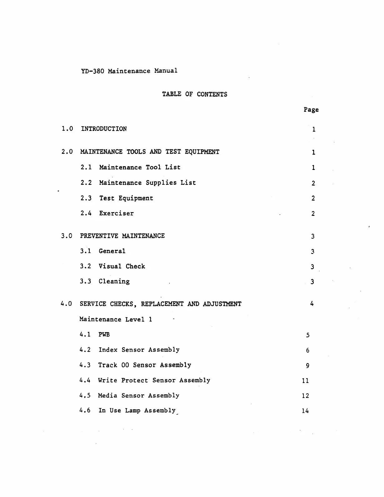 Y-E Data YD-380 - Default Chapter; Table of Contents