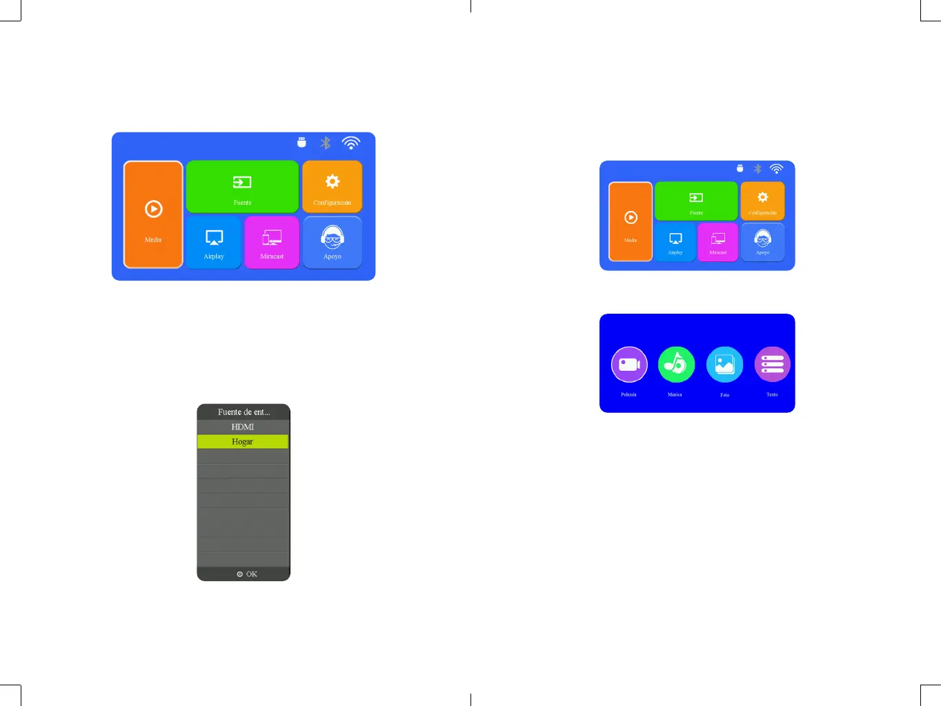 Seleccione la fuente de señal de entrada deseada (USB/HDMI) en la página