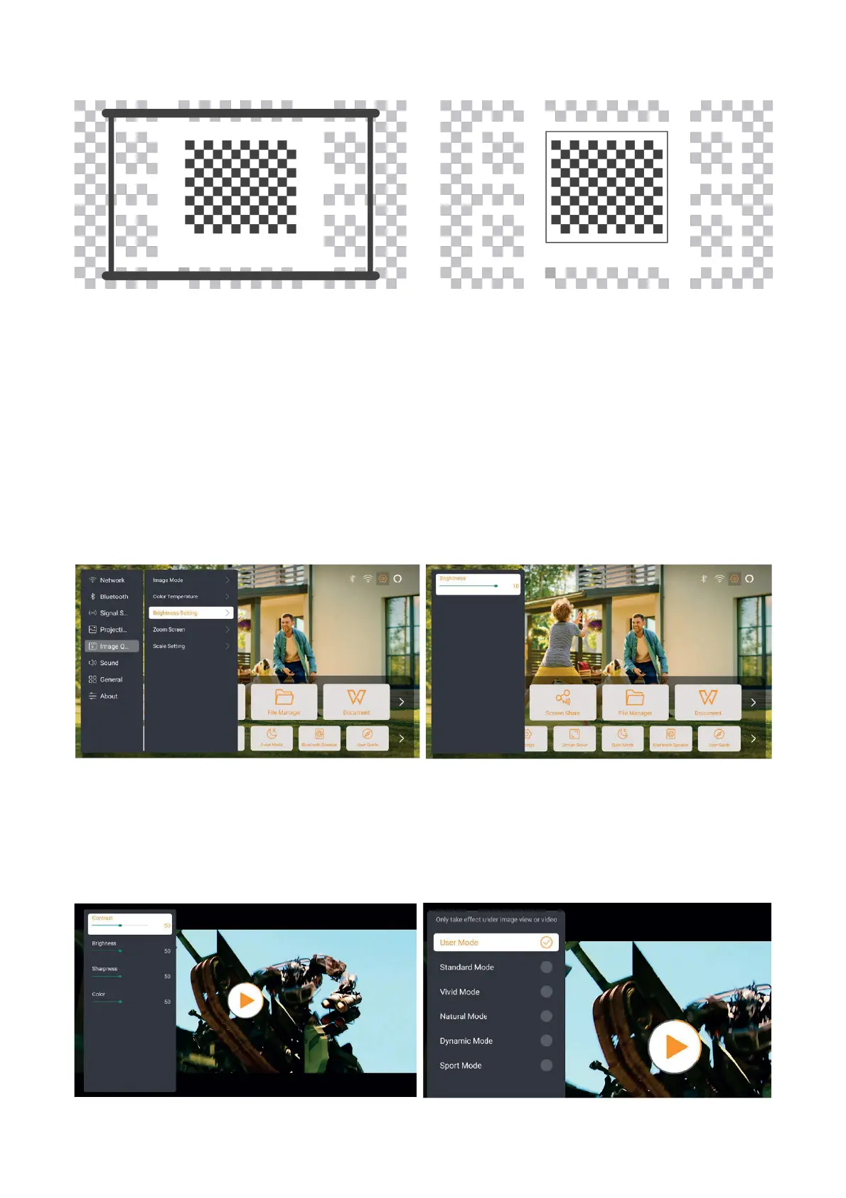 Ändra bildens färg genom [Hem] - [Inställningar] - [Bildkvalitet] - [Bildläge]. Obs: