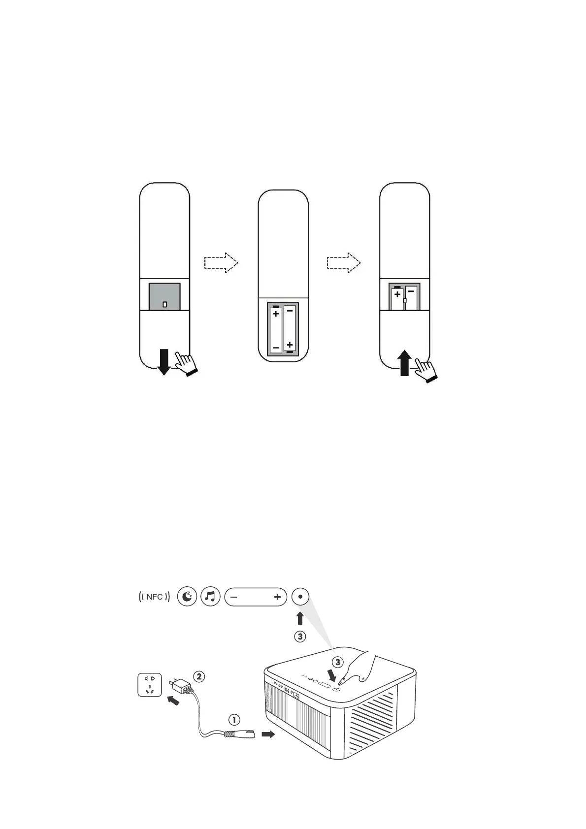 Insert 2 AAA batteries with correct polarity indicated.