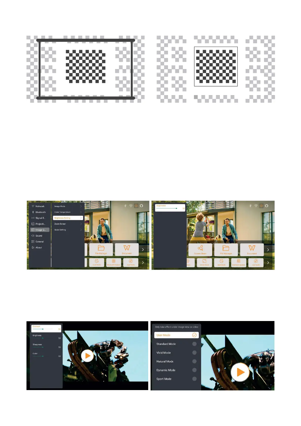 Juster skærmens lysstyrke via [Hjem] - [Indstillinger] - [Billedkvalitet] -
