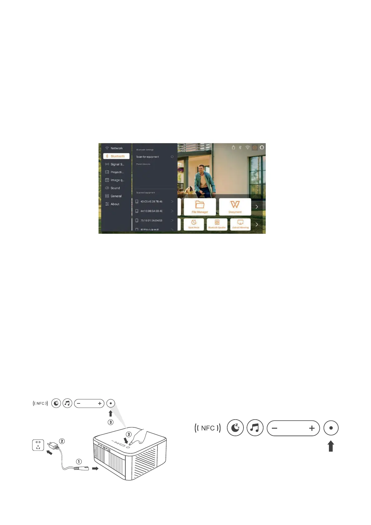 parittaa projektorin [K3_xxxx] mobiililaitteesi kanssa musiikin kuuntelua varten.
