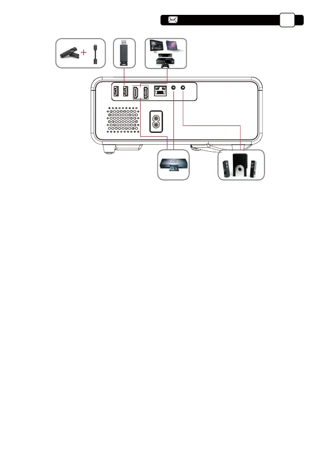 1)TVスティックまたはラップトップをプロジェクターのHDMIポートに接続しま