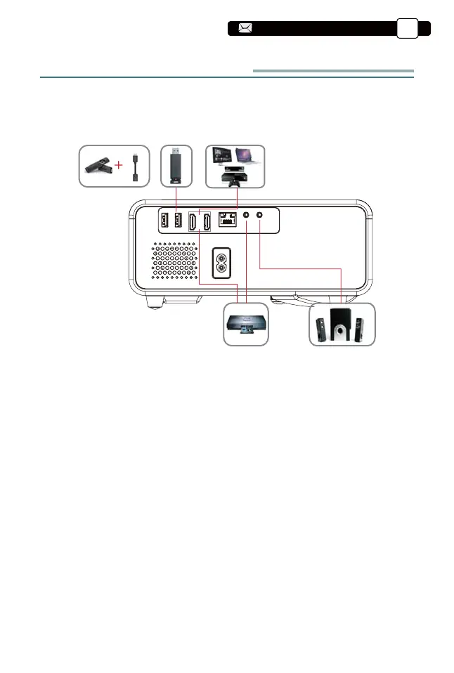 1) Connect your TV stick or laptop to any HDMI port of the projector;