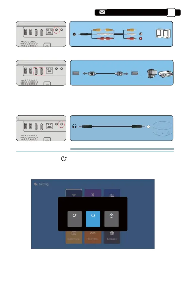 mm per collegare il proiettore e l'altoparlante come mostrato nell'immagine,