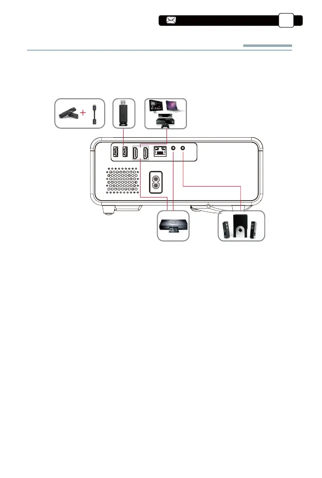 1) Conecte su dispositivo de TV o computadora portátil a cualquier puerto