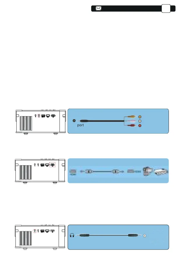 3) Conecte el conector negro al puerto AV del proyector, ingrese a la página