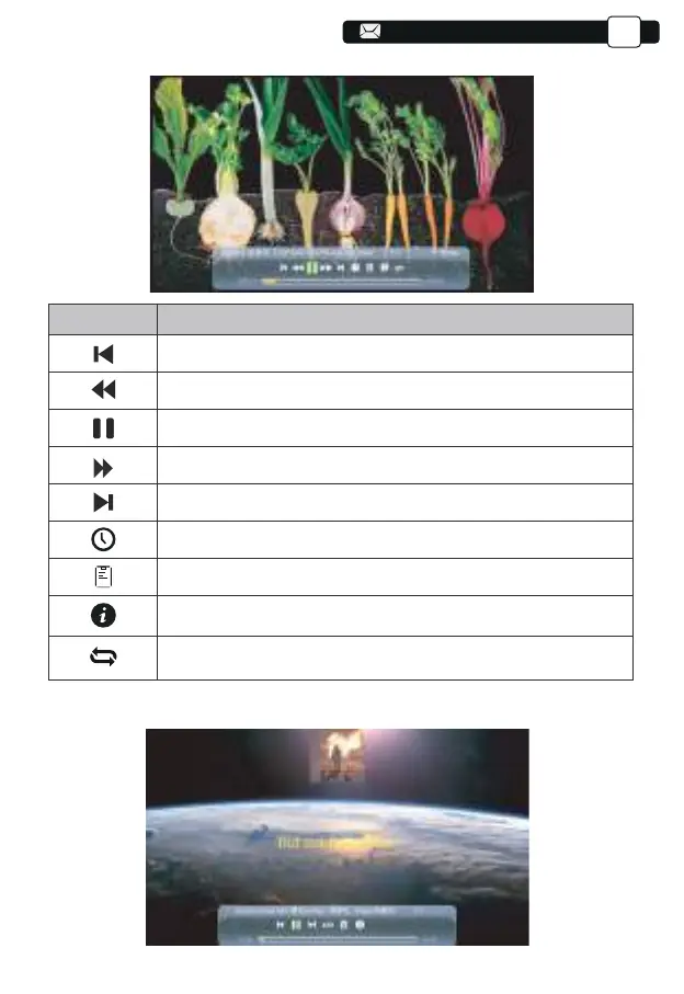 Schneller Rücklauf, spult das Video während der Wiedergabe schnell zurück.