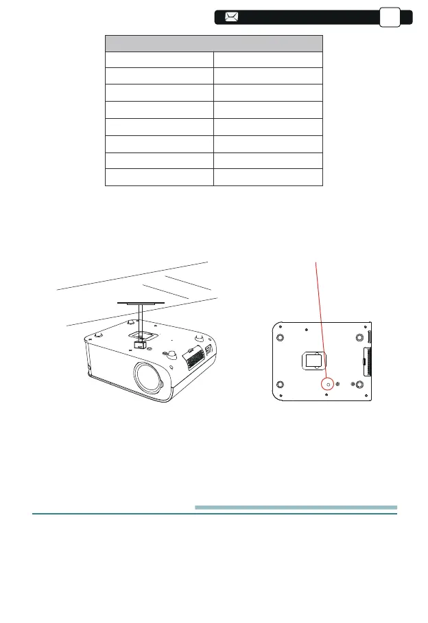 2.プロジェクターの底には天井取り付け用のネジ穴があります。(規格はM