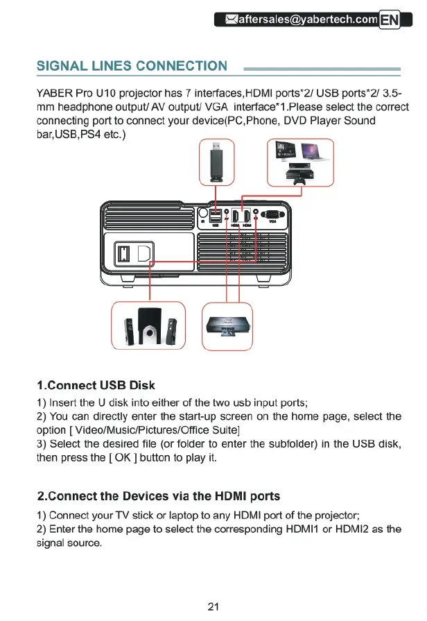 Yaber U10 - Signal Line Connections; Connecting Devices via HDMI