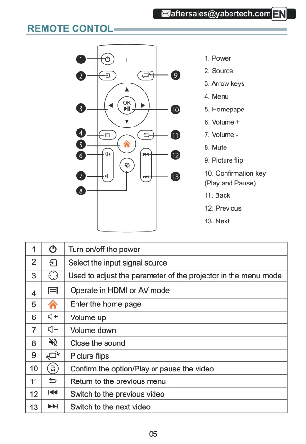 Yaber U10 - Remote Control Operations; Detailed Remote Control Button Operations