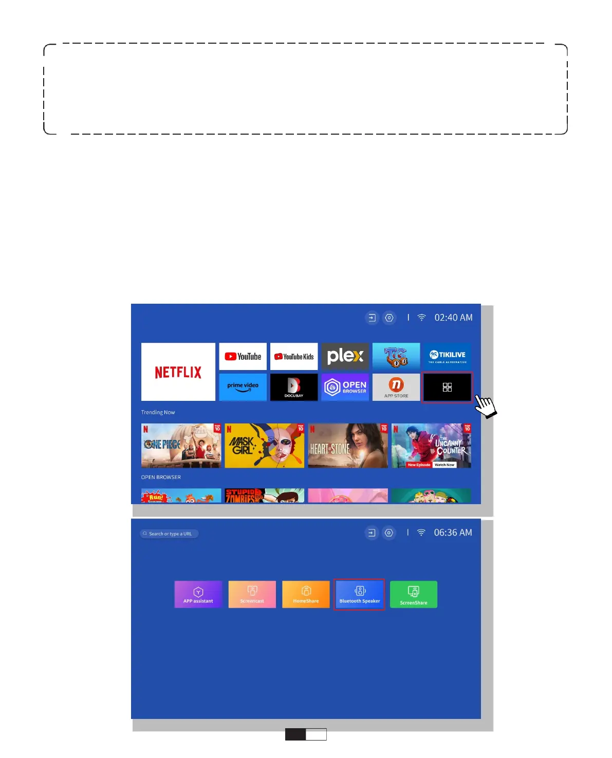 Siirry kohtaan Kotisivu -> Omat sovellukset -> Bluetooth-kaiutin ja pysy seuraavalla