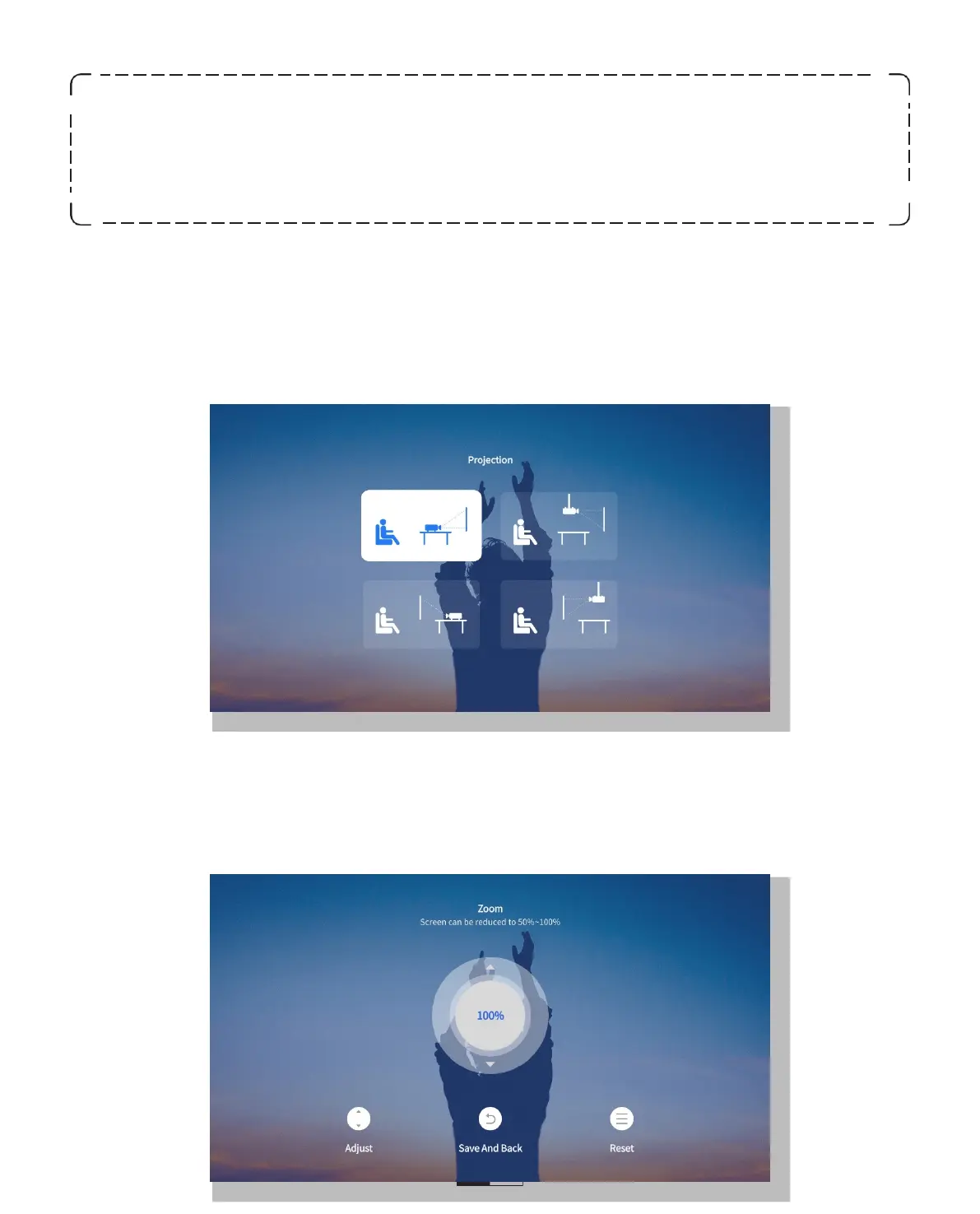 Gå til Setting-> Projection for at vælge den passende projektionstilstand baseret
