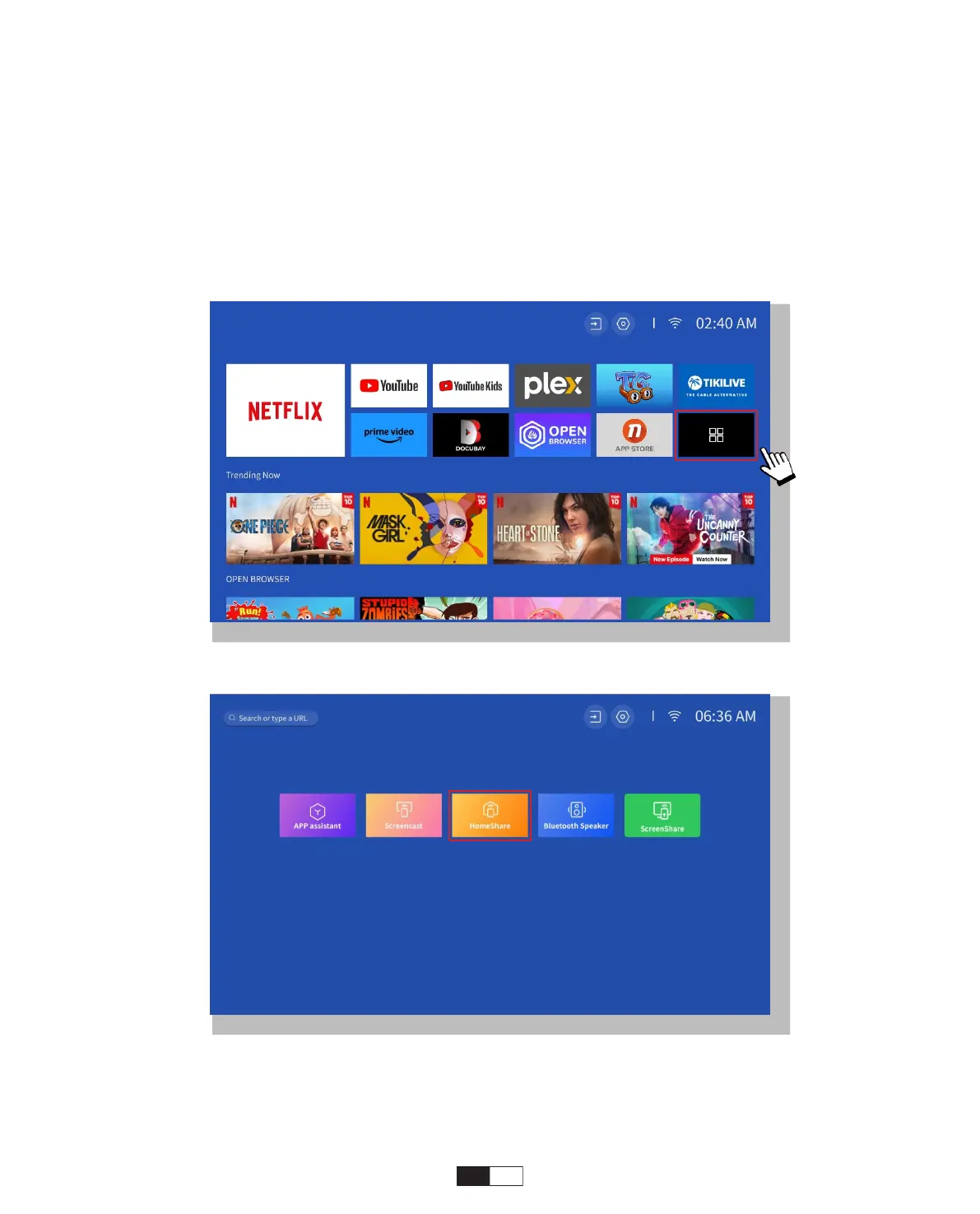 Gå til Hjemmeside -> Mine apps -> HomeShare og bliv den følgende side.