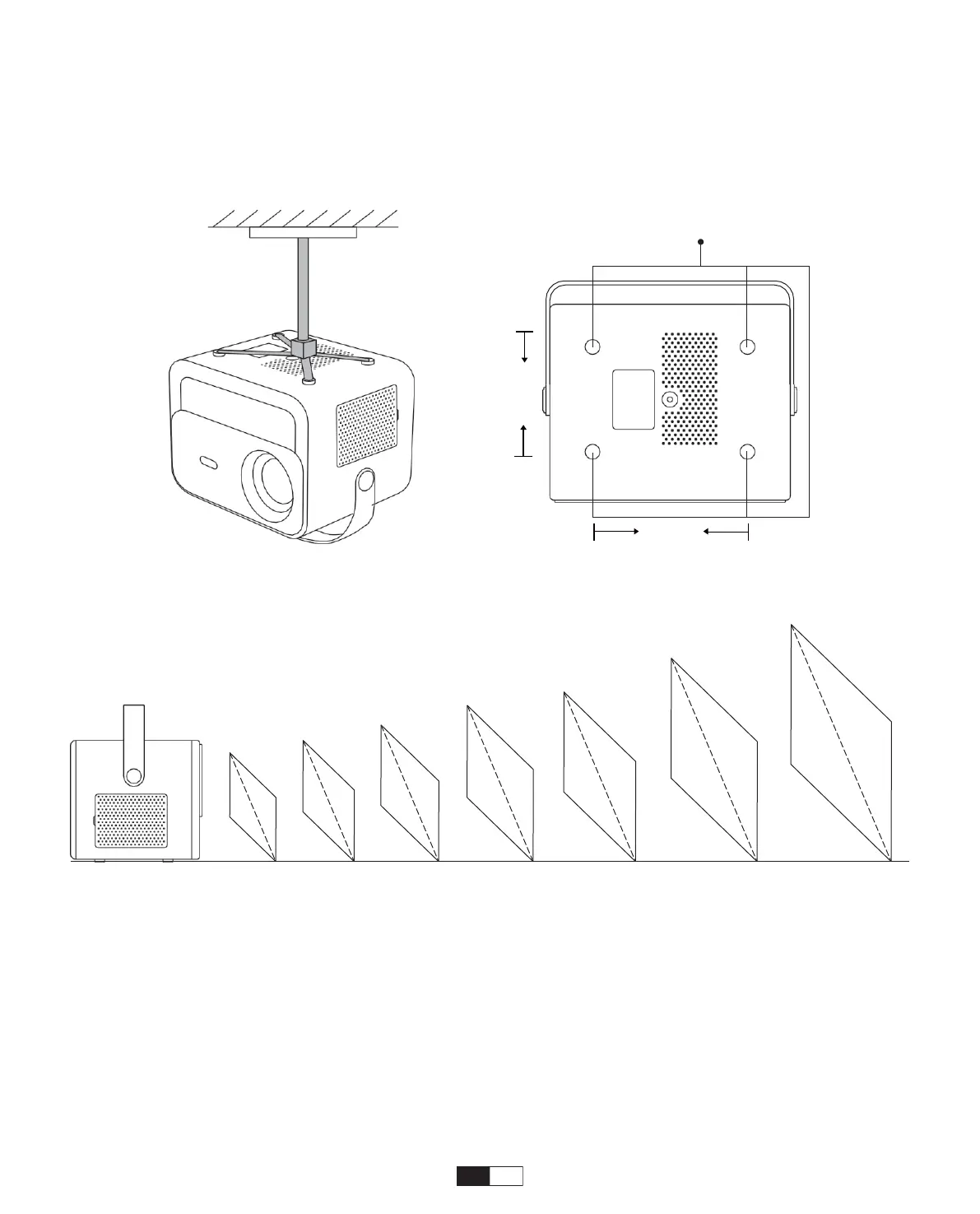 Suositeltava projektioetäisyys on noin 2,7m, ja lyhin projektioetäisyys on1,4 m.