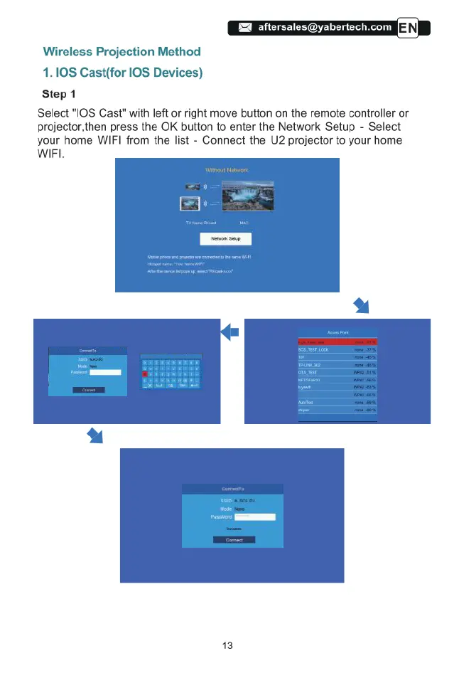 Yaber U2 - Wireless Projection Method; Wireless Projection: iOS Cast