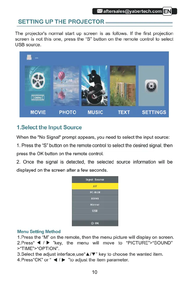 Yaber U5 - SETTING UP THE PROJECTOR; 1. Select the Input Source