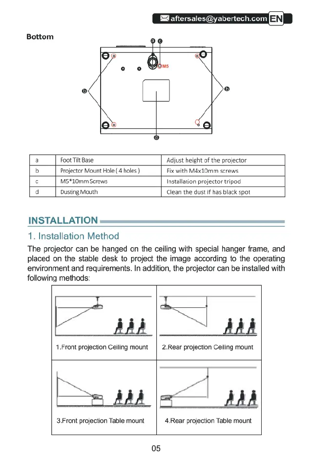 Yaber U5 - INSTALLATION; 1. Installation Method