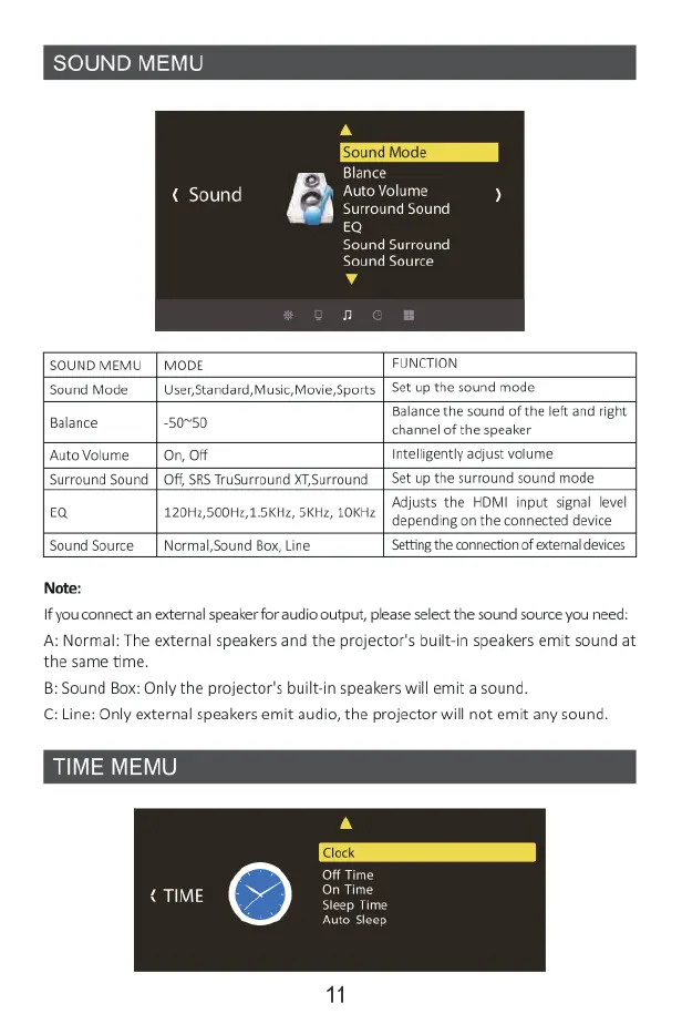 Yaber Y21 - Sound Menu Settings; Time Menu Settings