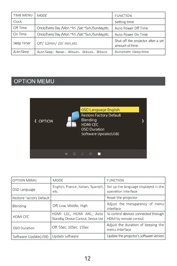 Yaber Y21 - Option Menu Settings