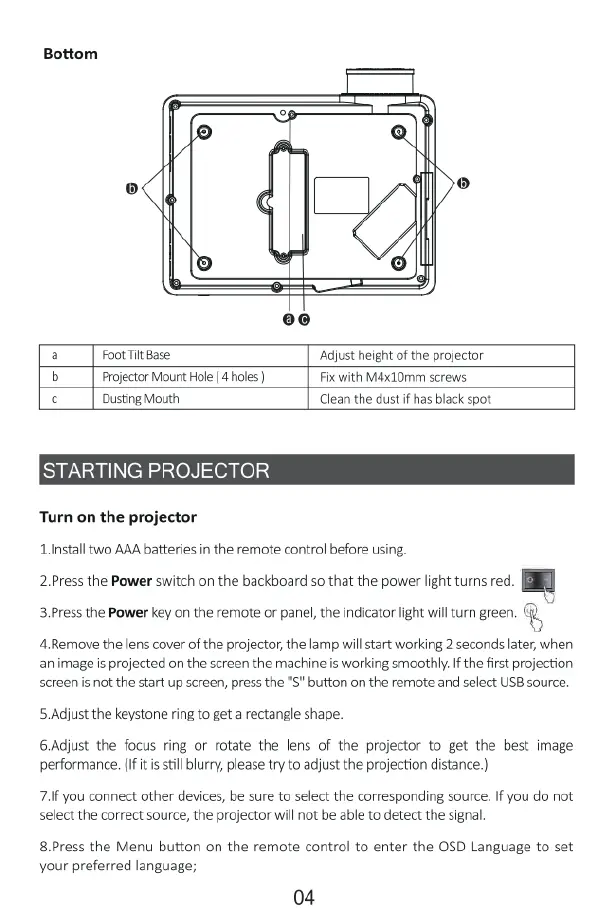 Yaber Y21 - Setup and Adjustment; Starting the Projector