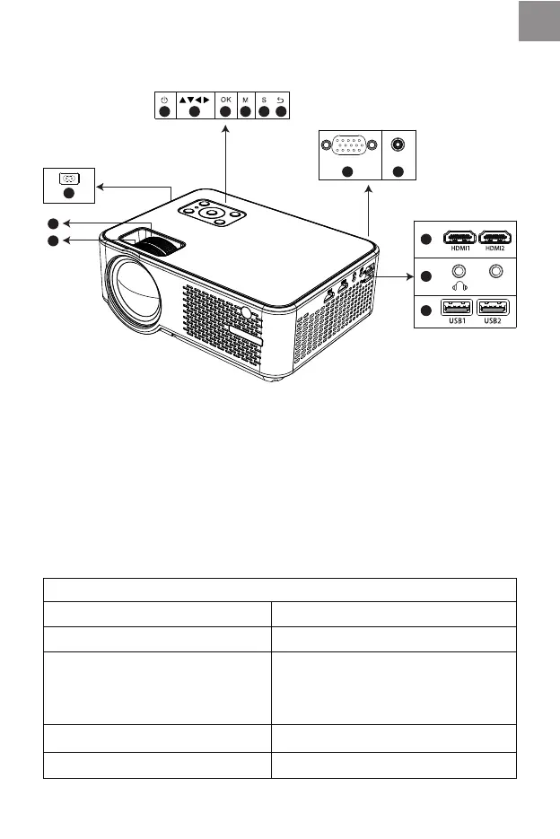 Note: Si prega di fare riferimento al proiettore reale, la foto è solo illustrativa