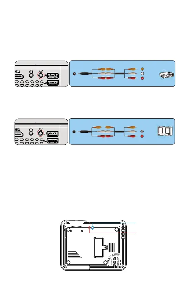 1.Utilizzare il cavo AV in dotazione per collegare la soundbar al proiettore.