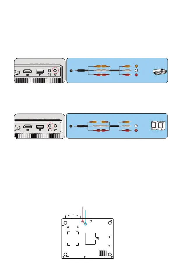 1.Utilizzare il cavo AV in dotazione per collegare la soundbar al proiettore.