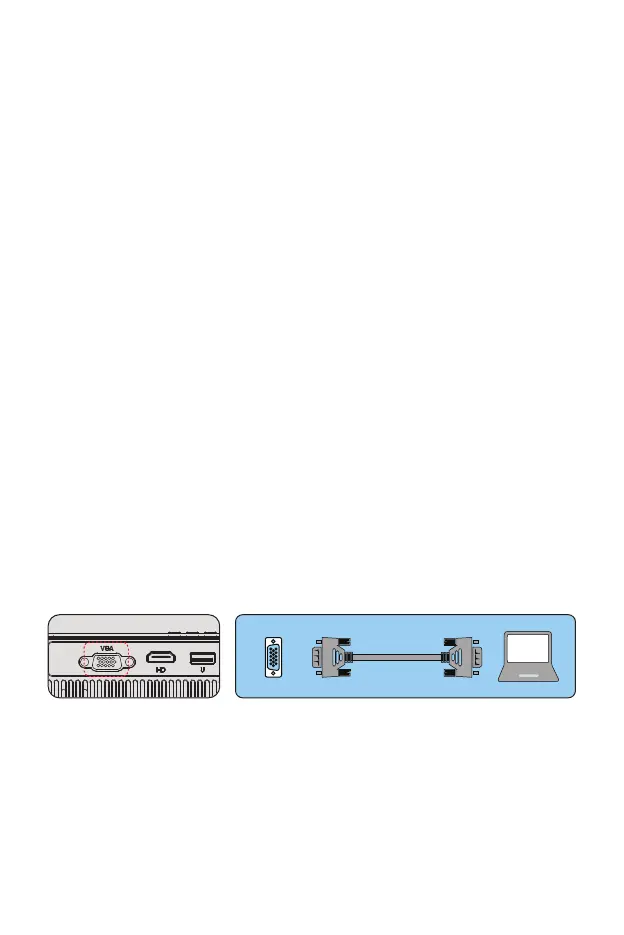 1.Use the supplied VGA cable to connect the PC to the projector.