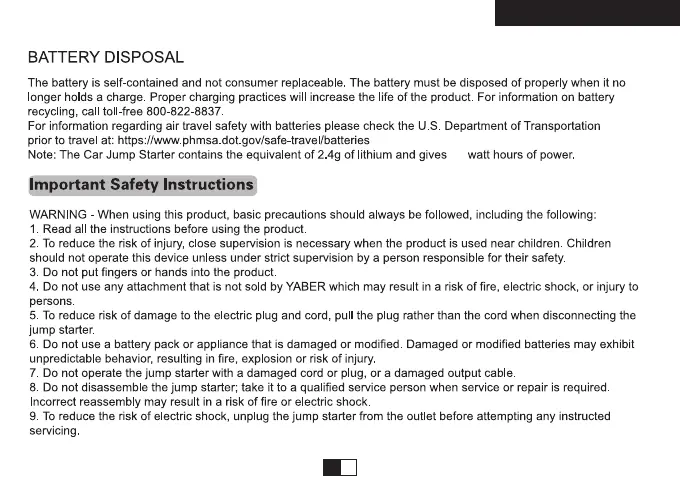 Yaber YR500 - Battery Disposal; Important Safety Instructions