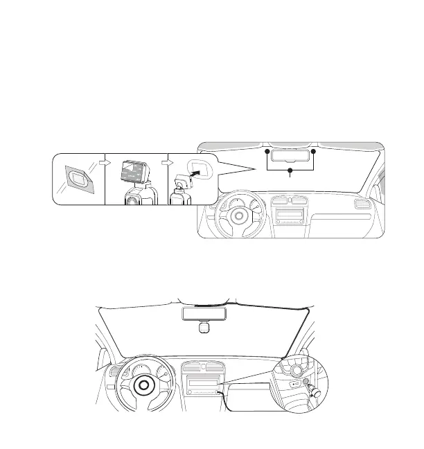 Installez la caméra sur le pare-brise. Vous pouvez mettre la caméra sous tension