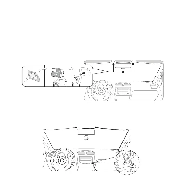 Mount the camera onto the windshield. You can power on the camera
