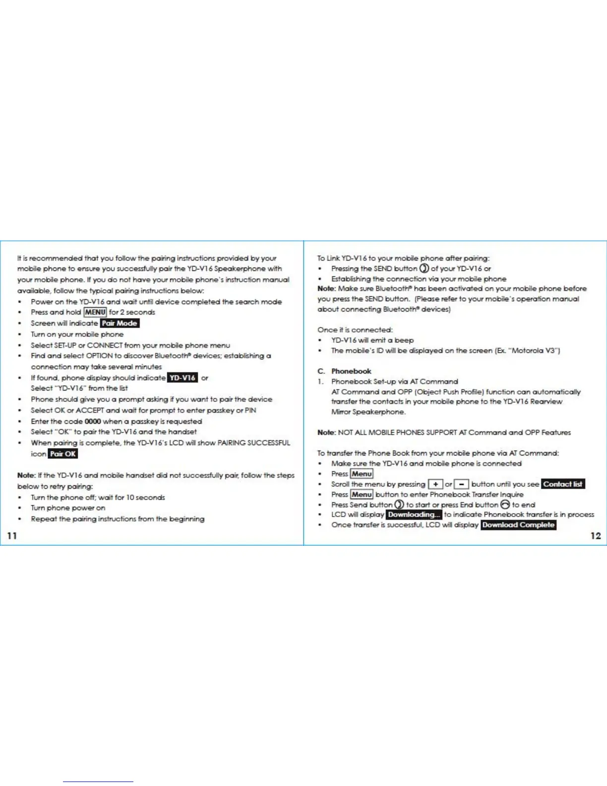 Yada yd-v16 - Phonebook; Phonebook Set-up via AT Command