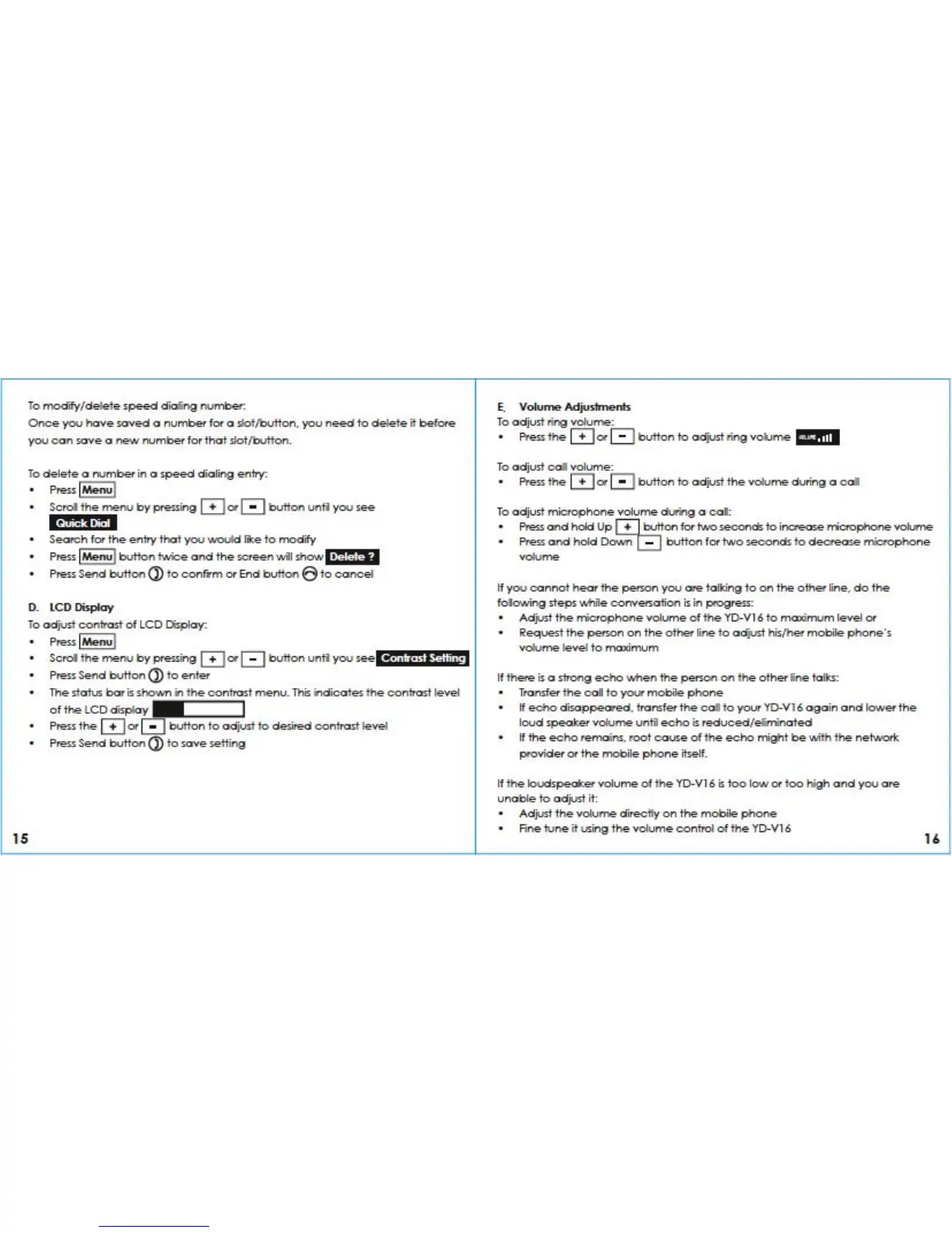 Yada yd-v16 - LCD Display; Volume Adjustments