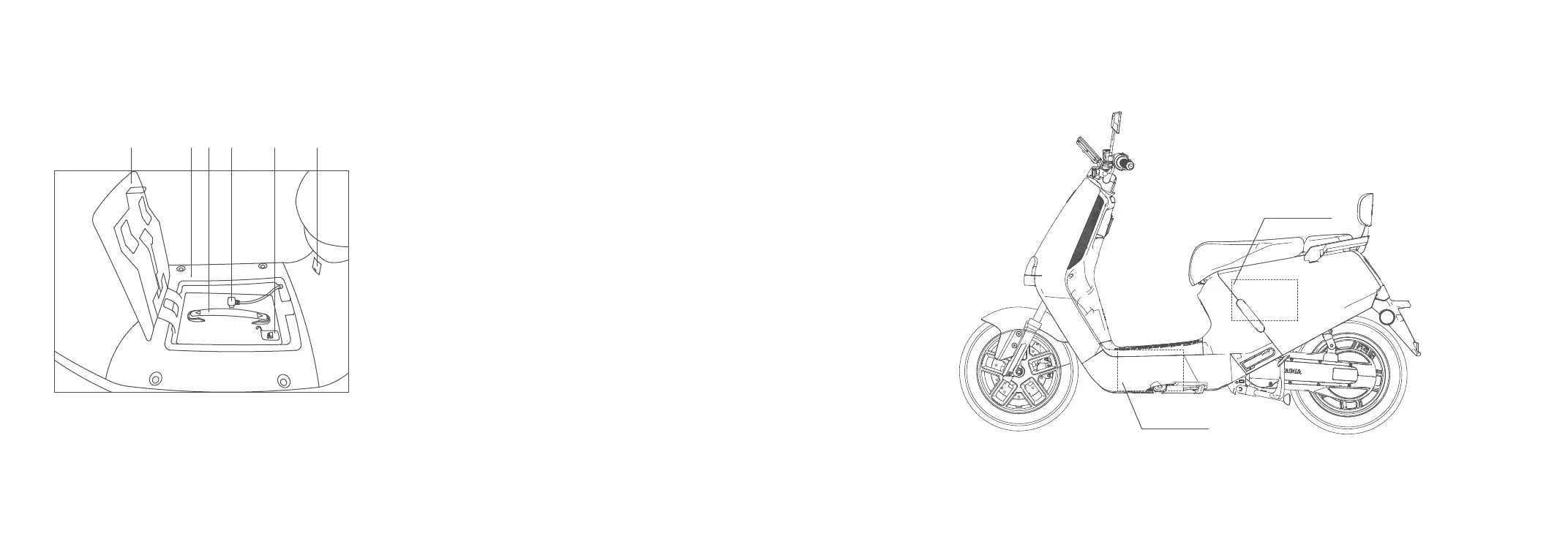 Open the seat, close the air switch. Insert the key into the lock hole of the battery compartment