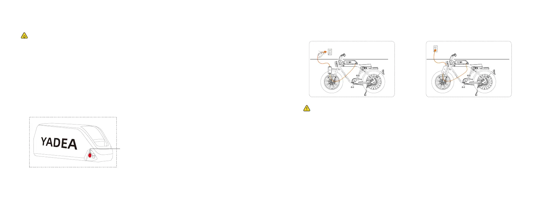Genuine YADEA charger must be used to charge the battery. Modification&disassem-