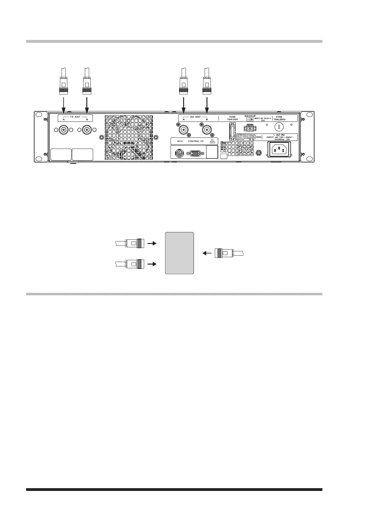1 When using a duplexer, plug the coaxial cables from the TX ANT and RX ANT terminals into the jacks of the