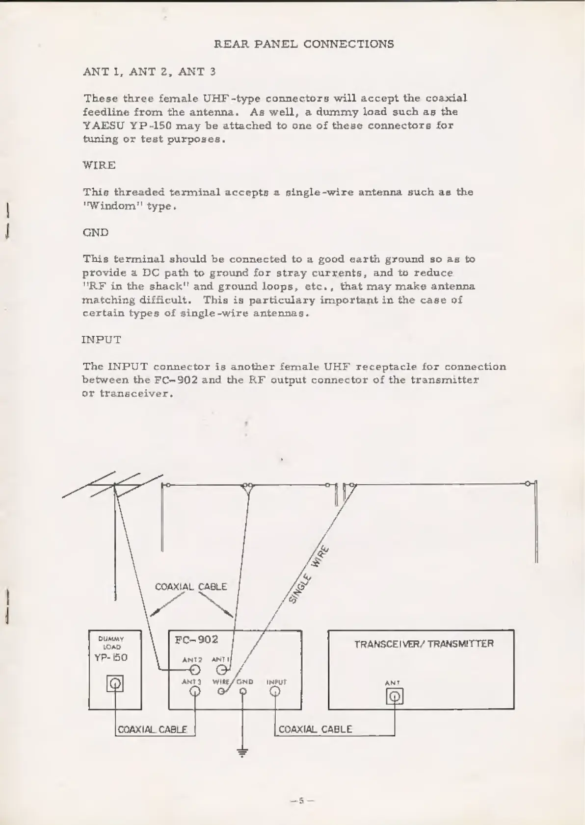 Yaesu FC-902 - Rear Panel Connections; ANT 1, ANT 2, ANT 3 Connectors; WIRE Terminal; GND Terminal