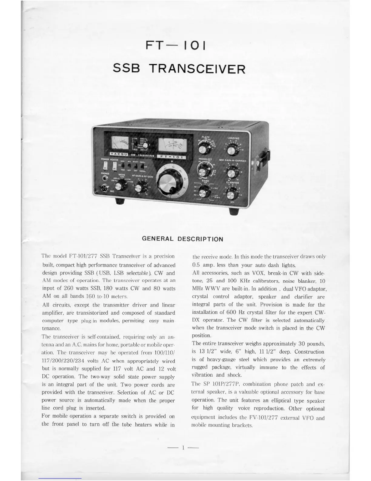 Yaesu FT-101 - General Description